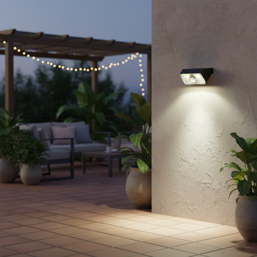Cuenta con sensor de movimiento y tres modos de iluminación para adaptarse a tus necesidades: puede permanecer apagado hasta detectar movimiento, encenderse al 100% durante 20 segundos; mantenerse encendido al 20% durante toda la noche y subir al 100% al detectar movimiento; o simplemente permanecer al 20% de luz toda la noche, garantizando seguridad y ahorro de energía.